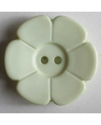 Sievä kukkanappi. Muovisen napin halkaisija on 15 mm. Pieni nappi sopii erinomaisesti lasten vaatteisiin. Laadukas saksalaisen Dillin valmistama nappi on kooltaan 15 mm. Se on valmistettu muovista ja kestää konepesun 60 asteessa.