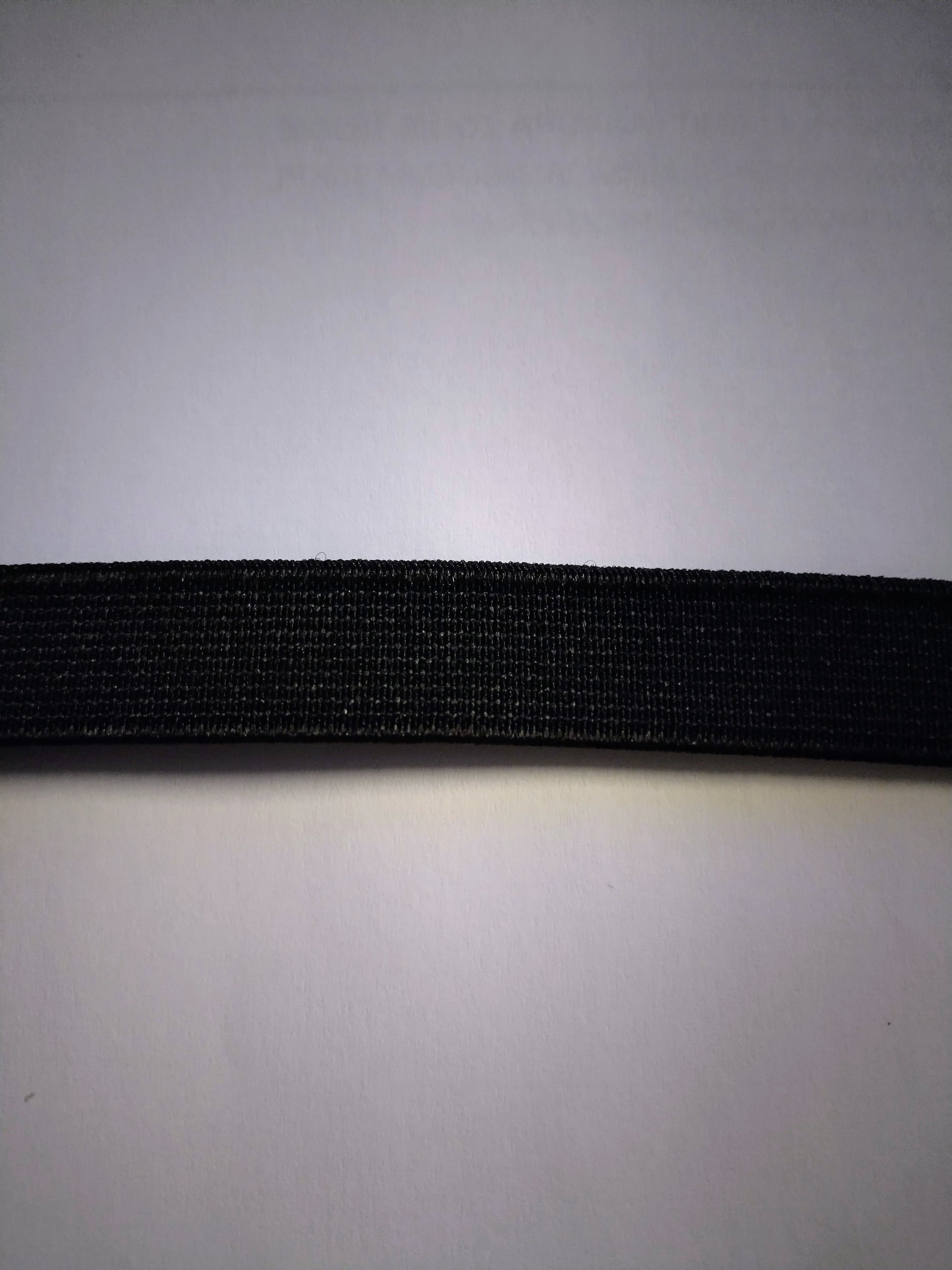 Sopivan napakka peruskuminauha, leveys 15 mm. Voidaan ommella päältä tai pujottaa kujaan.