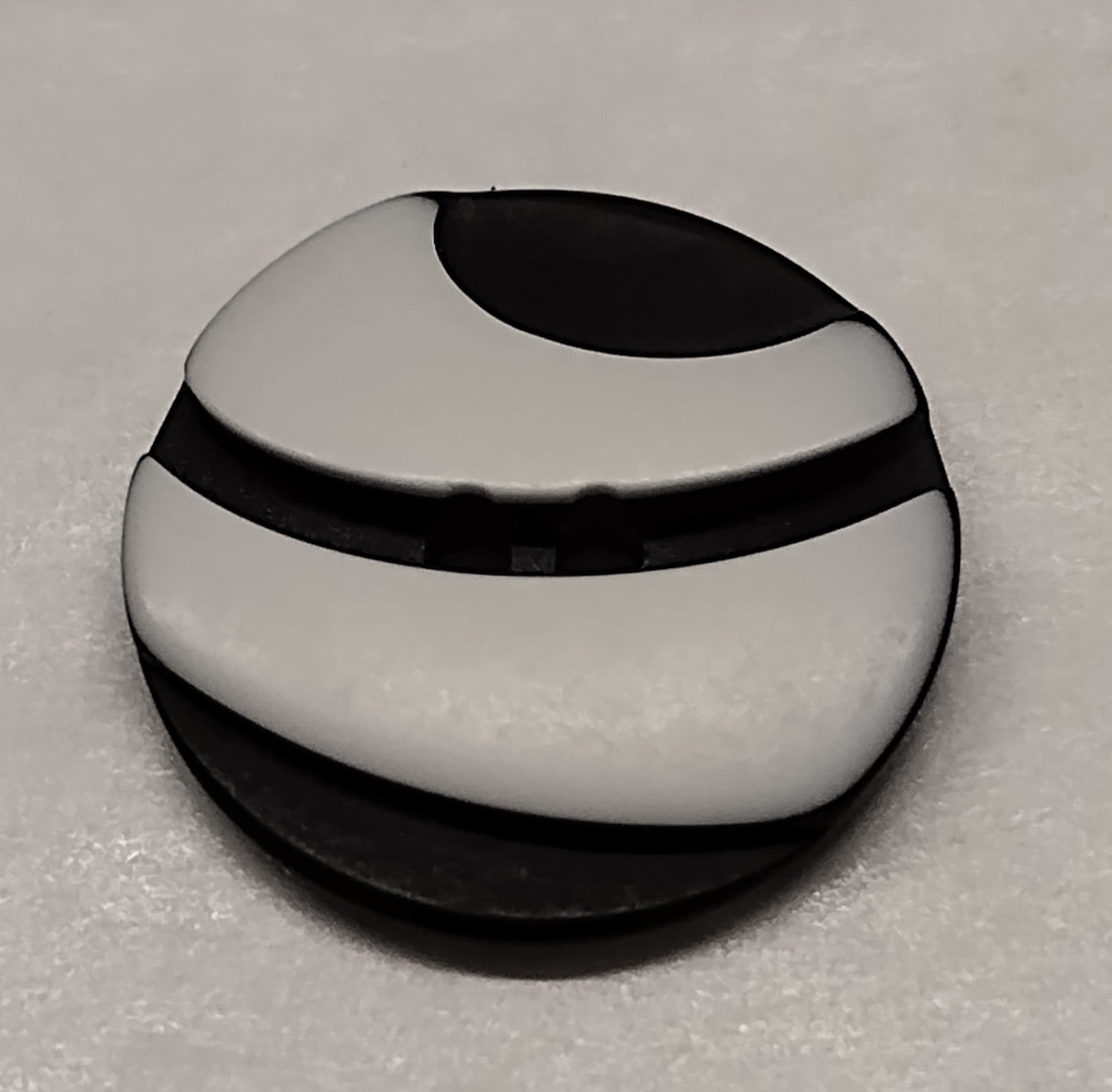 Laadukas mustavalkoinen, 18 mm muovinappi.