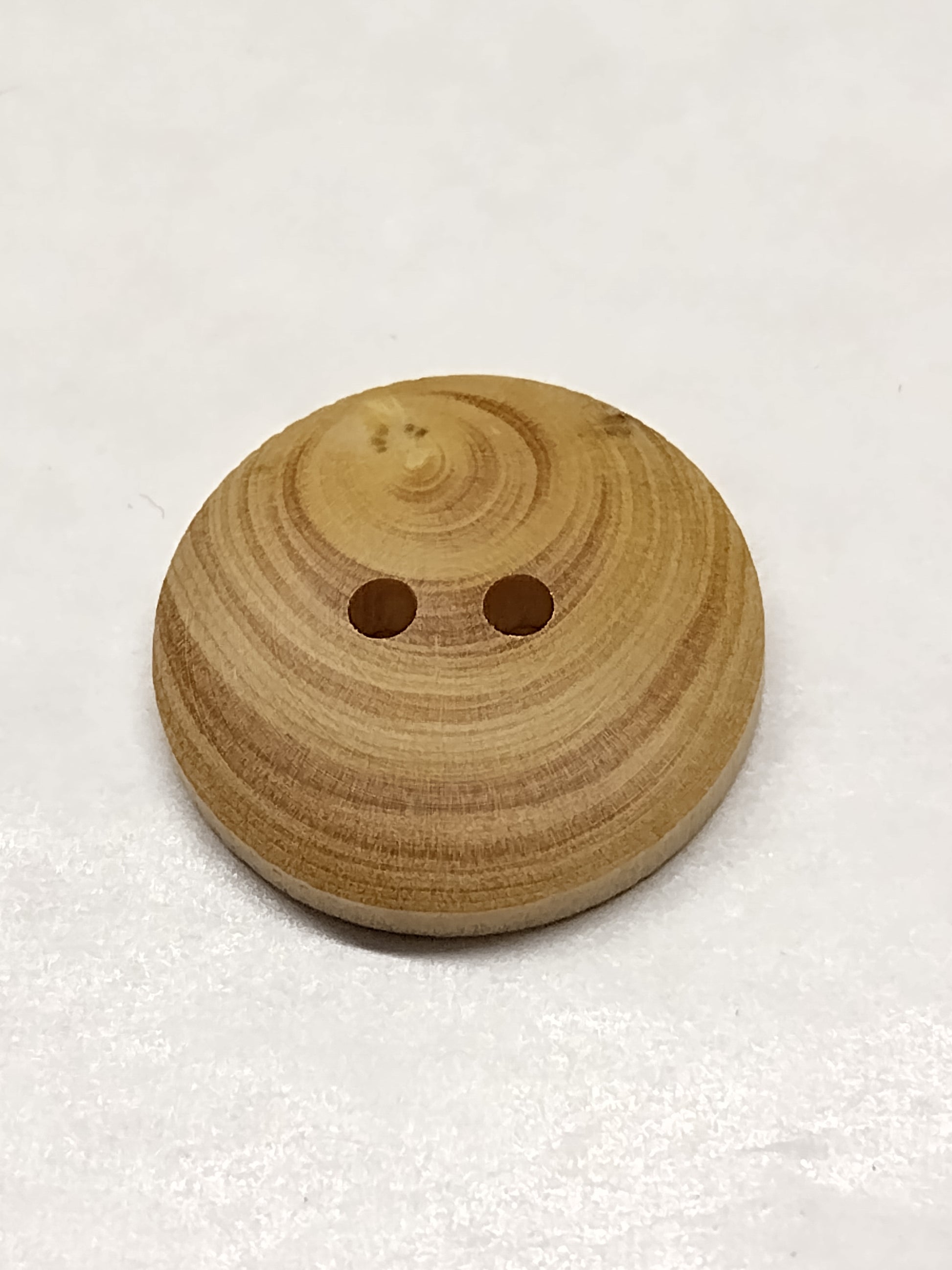 Pyöreässä, yksinkertaisessa ja erittäin kauniissa puunapissa puun syyt tulevat hienosti esiin ja nappi on hiottu aivan sileäksi. Nappia on saatavilla kolmea eri kokoa: 14, 20 ja 25 mm.