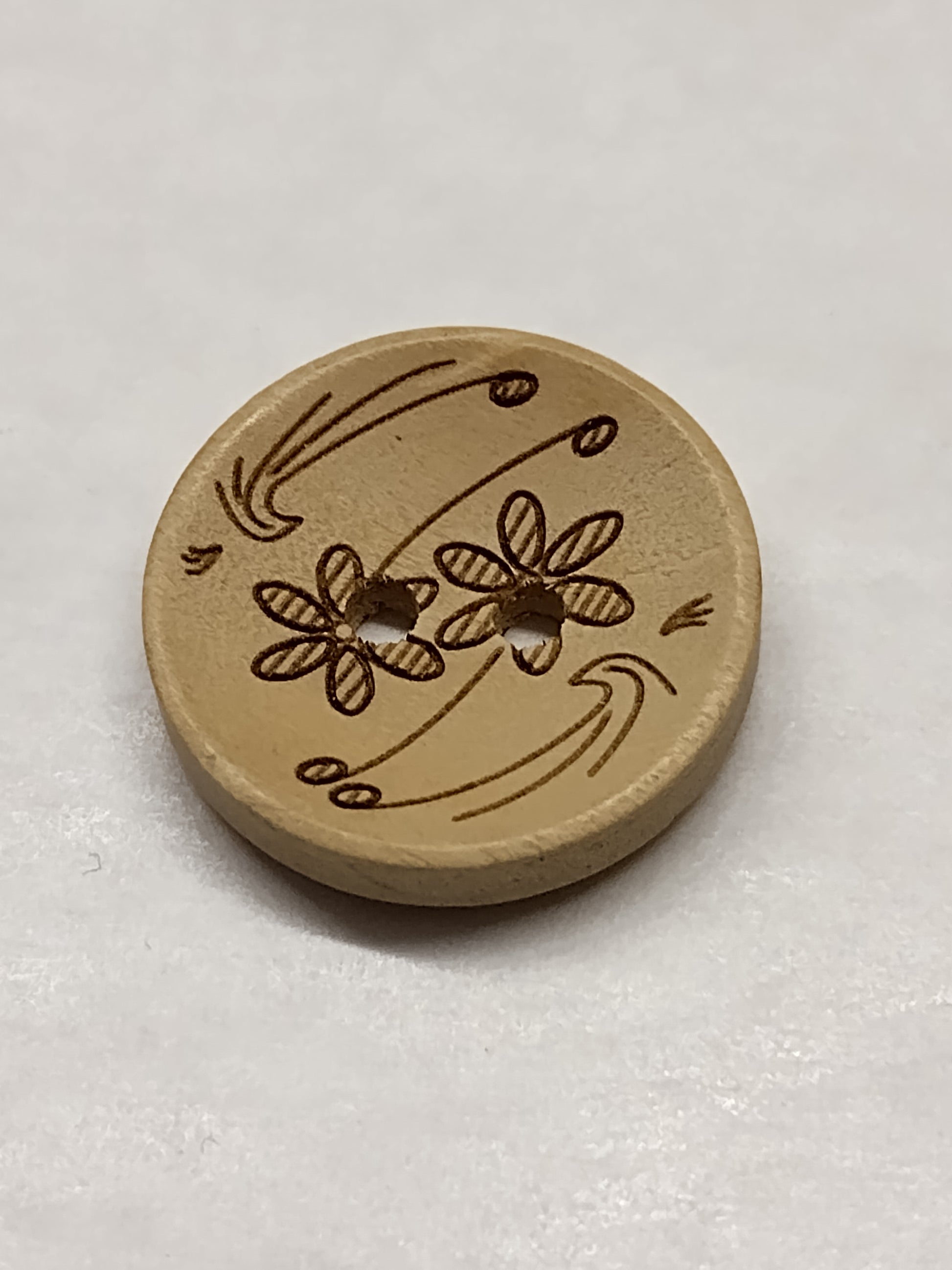 Kukkakuvioinen nappi on kooltaan 20 mm.