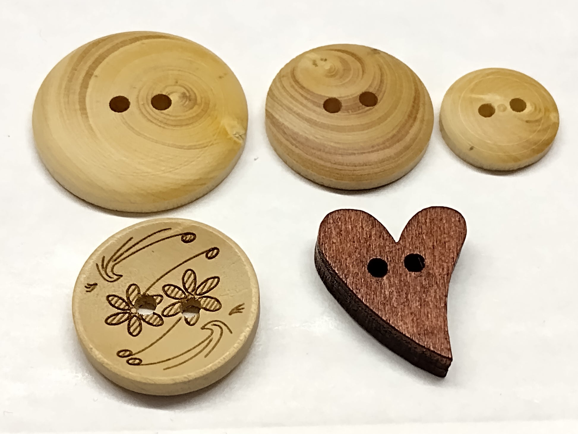 Erilaisia puunappeja. Puunapeissa tulee huomioida se, etteivät napit ole identtisiä keskenään, vaan niissä näkyvät puun luonnolliset värierot.